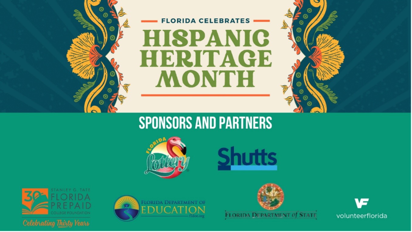 Volunteer Florida thanks the sponsors and partners for the 2025 Hispanic Heritage Month Contests: Shutts, Florida Lottery, Florida Prepaid College Foundation, Florida Department of State, and the Florida Department of Education.